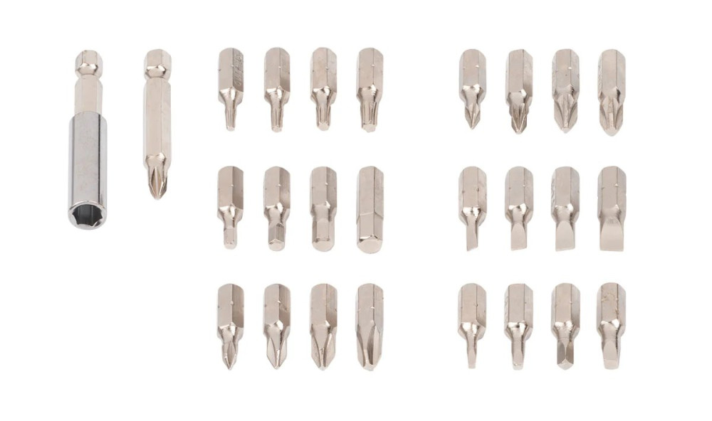 - 24× 25 mm bity (T10/T15/T20/T25, SL3/SL4/SL5/SL6, PZ0/PZ1/PZ2/PZ3, PH0/PH1/PH2/PH3, H3/H4/H5/H6, S0/S1/S2/S3)