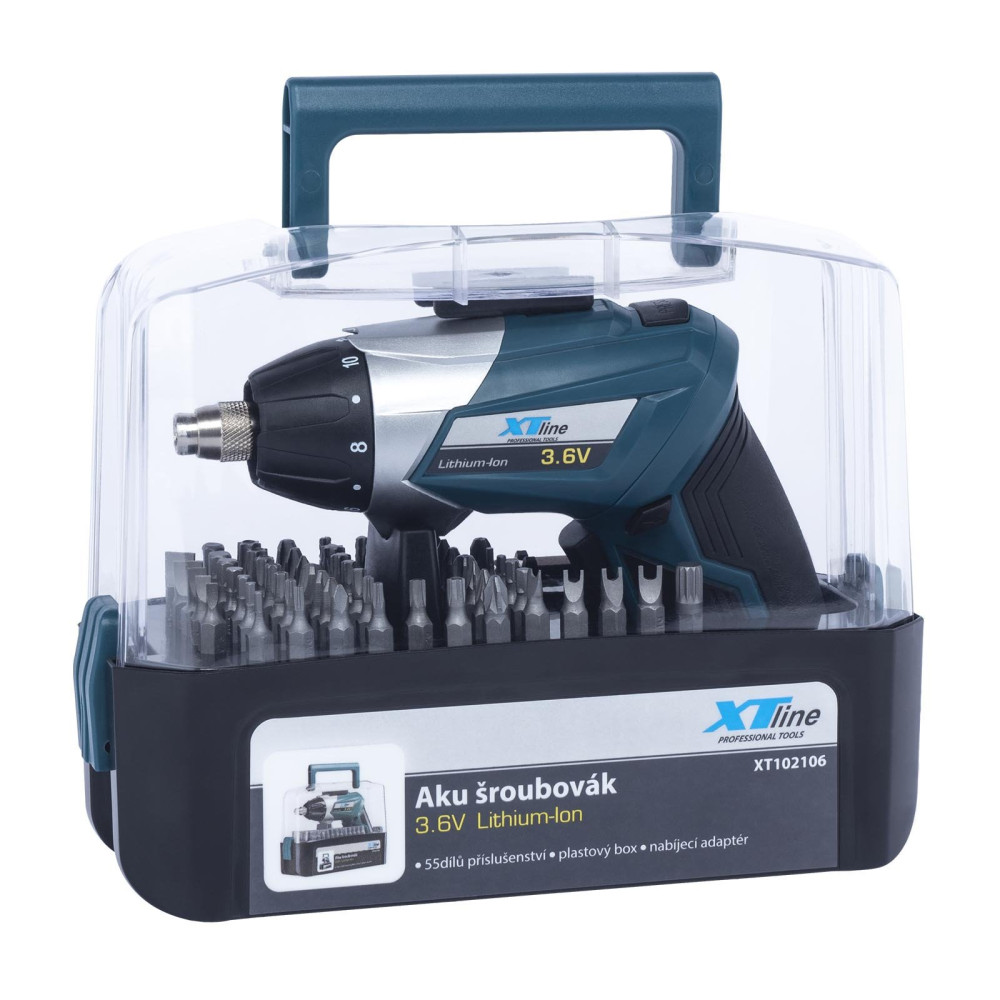 Aku skrutkovač XTline 3,6V + box + príslušenstvo 55 dielov