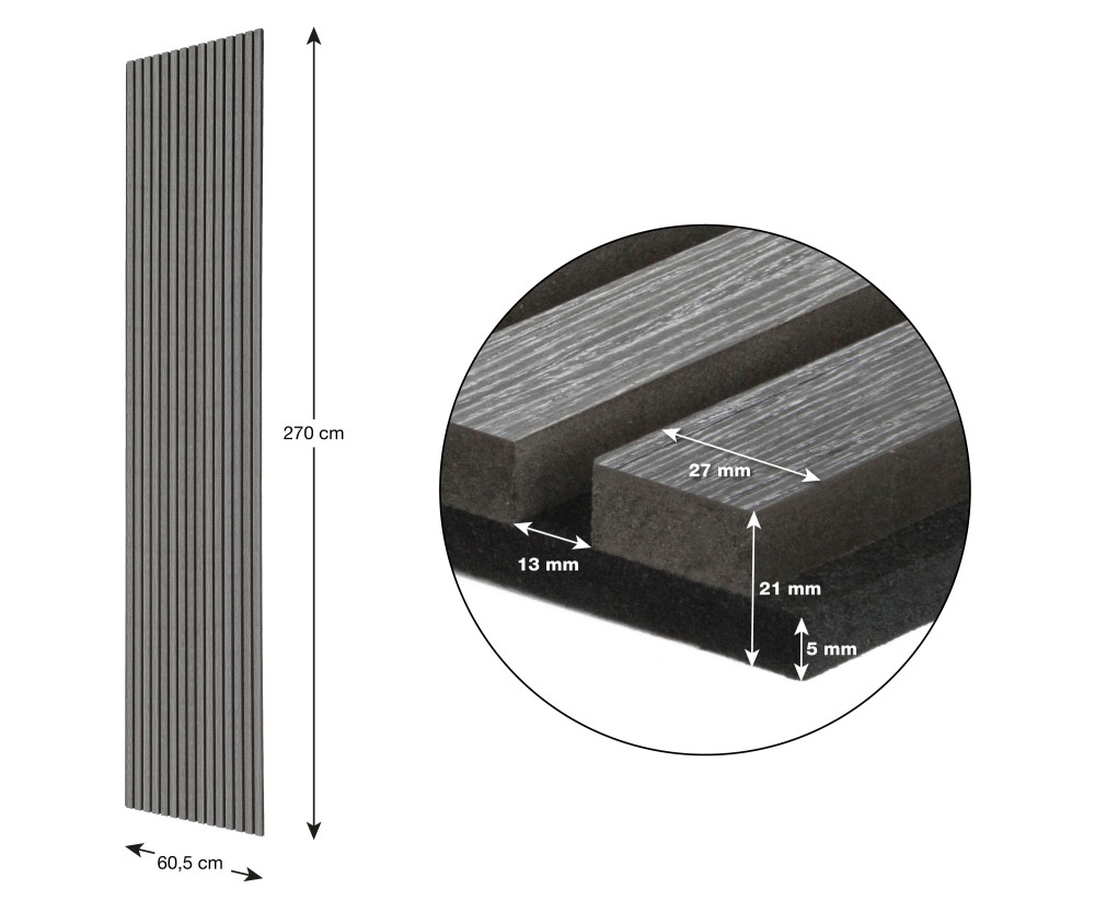 - Akustický panel G21 270x60,5x2,1 cm, tmavo šedý dub