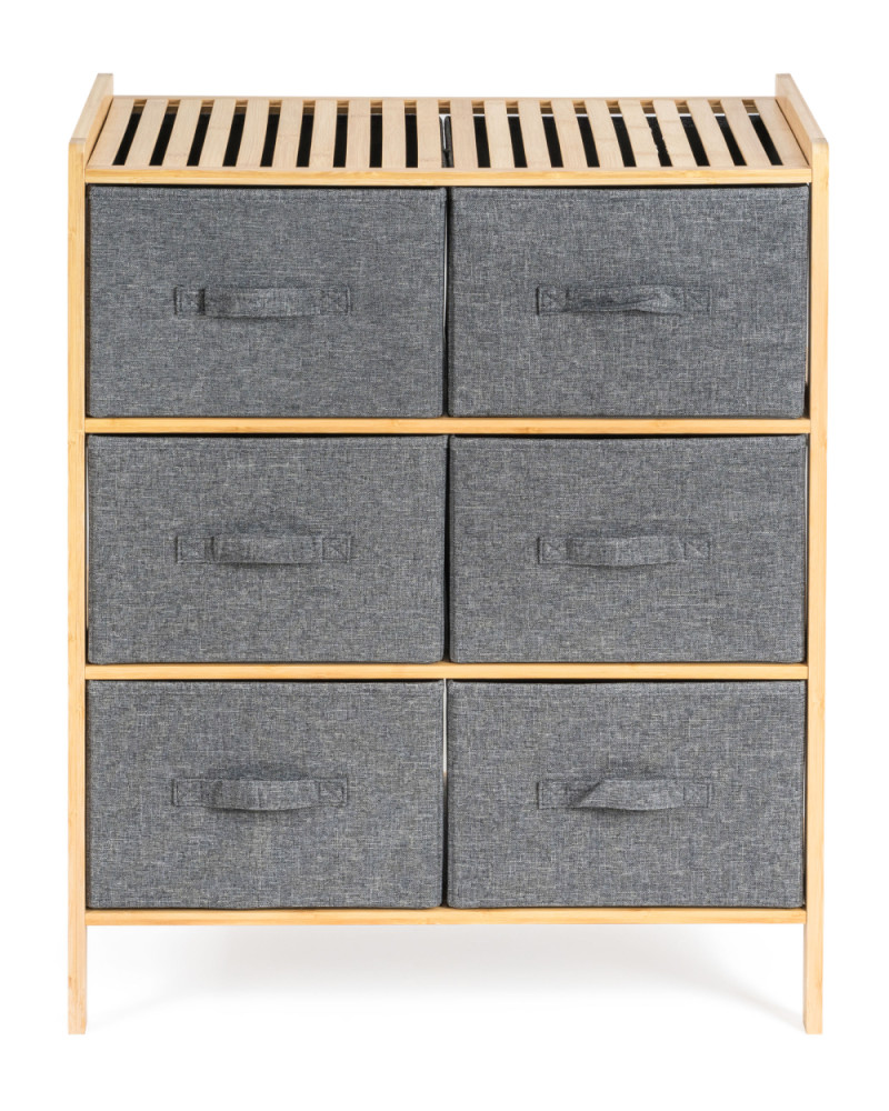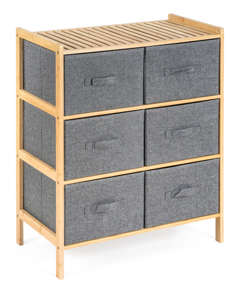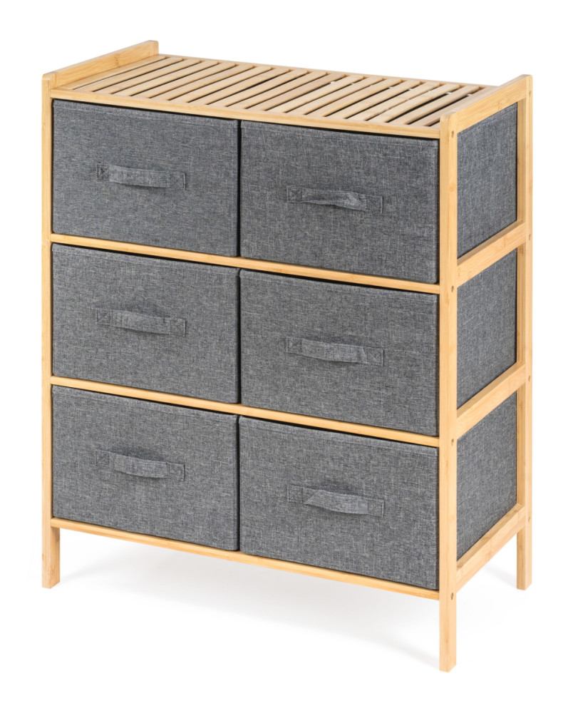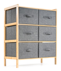 Praktický stojan so 6 výsuvnými textilnými košíkmi ušetrí veľa miesta a uložíte doň všetko, čo potrebujete. Potreby na pranie alebo kozmetiku, oblečenie aj detské hračky. Každý košík má objem 20 litrov, šírka je 31 cm, výška 19 cm a hĺbka 35 cm. Celý stojan má na výšku iba 78,5 cm.