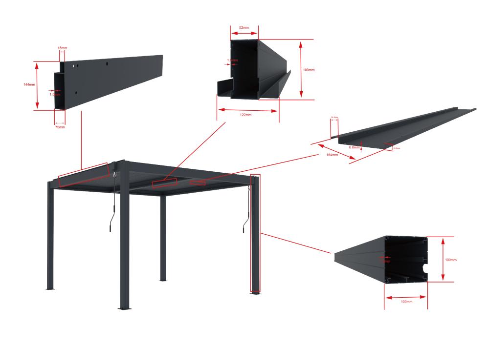 - Široká škála dokúpiteľného príslušenstva pre dokonalé prispôsobenie pergoly vašim potrebám