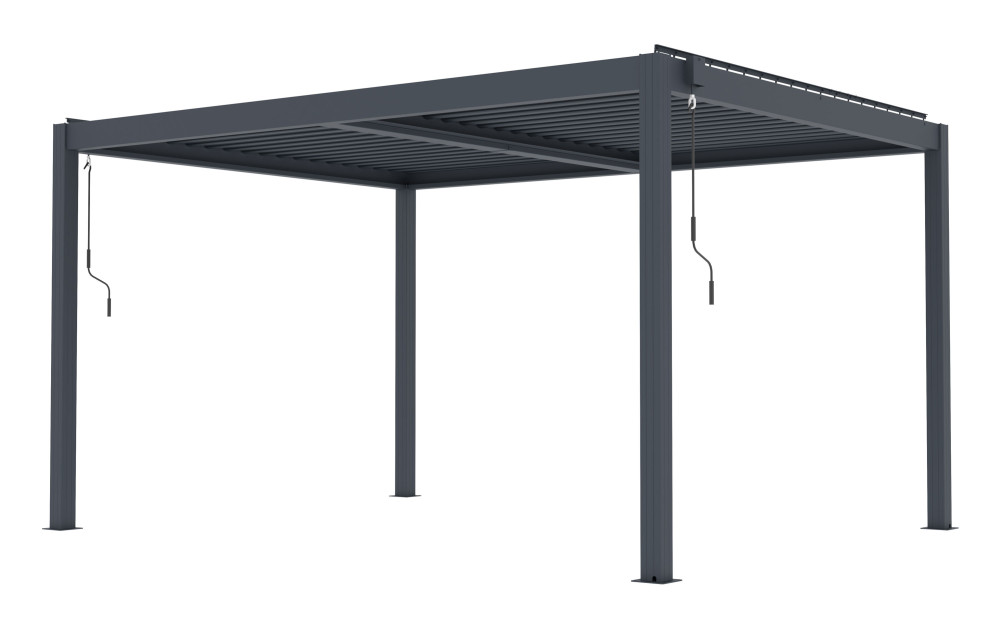 Manuálne nastaviteľné lamely vám umožňujú rýchlo reagovať na aktuálne počasie. Otvorením zabezpečíte príjemné prúdenie vzduchu a svetla, zatvorením naopak spoľahlivú ochranu pred snehom a dažďom. Vďaka možnosti nastavenia lamiel v rozsahu až 110° si nastavíte sklon tak, ako potrebujete vzhľadom na polohu slnka na oblohe. Pergola tak vytvára ideálny priestor pre relaxáciu aj posedenie s rodinou a priateľmi, nech je vonku akékoľvek počasie.
