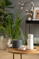 Okrúhly box Curver Jute je vybavený vekom. Po jeho uzavretí ho opäť ľahko otvoríte. Na veku sa totiž nachádza praktické pútko.
