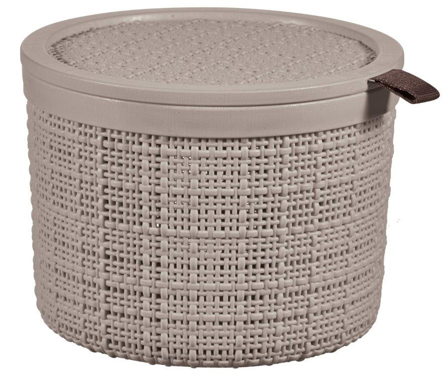 Kulatý box Curver Jute je vybavený víčkem. Po jeho uzavření ho opět snadno otevřete. Na víku se totiž nachází praktické poutko.