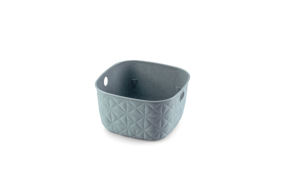 Tento štýlový a praktický box sa vyrába zo 70% recyklovaného plastu. Je teda šetrnejšie k životnému prostrediu. Zdobí ho jemná textúra v podobe trojuholníkov a štvorcov, ktorá pripomína prešívanú tkaninu. Doplní vybavenie kuchyne, obývacej izby, spálne a pokojne aj kúpeľne.