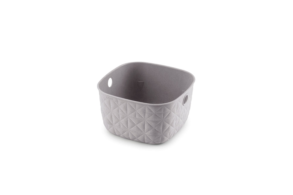 Tento štýlový a praktický box sa vyrába zo 70% recyklovaného plastu. Je teda šetrnejšie k životnému prostrediu. Zdobí ho jemná textúra v podobe trojuholníkov a štvorcov, ktorá pripomína prešívanú tkaninu. Doplní vybavenie kuchyne, obývacej izby, spálne a pokojne aj kúpeľne.