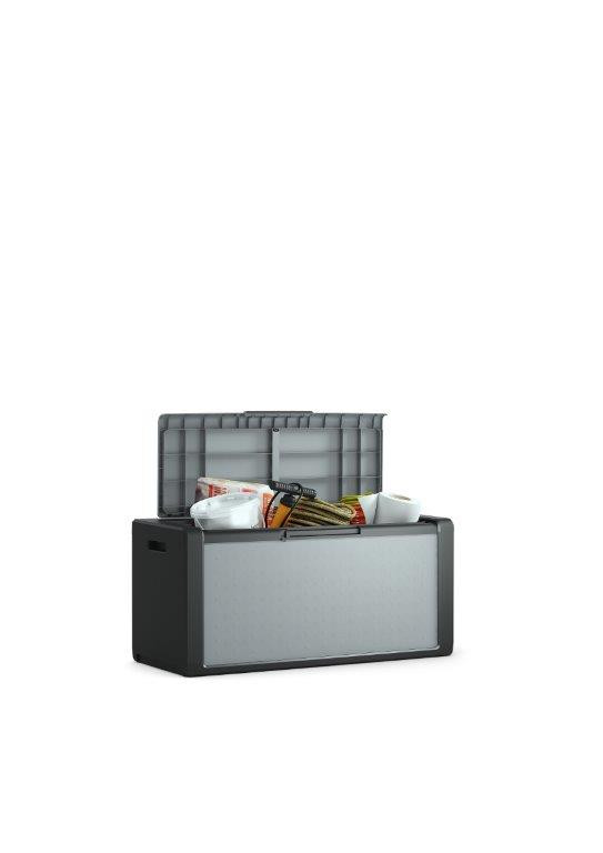 Truhlica od značky Keter je ideálnym pomocníkom na udržanie poriadku na vašej terase alebo v altánku. Vo vnútri bez problémov uschováte textílie, kvetináče, záhradné náradie aj sezónne dekorácie. Vďaka veku s certifikáciou IPX1 odolá zvislému dažďu a ak box umiestnite pod prístrešok, budú vaše veci spoľahlivo chránené.