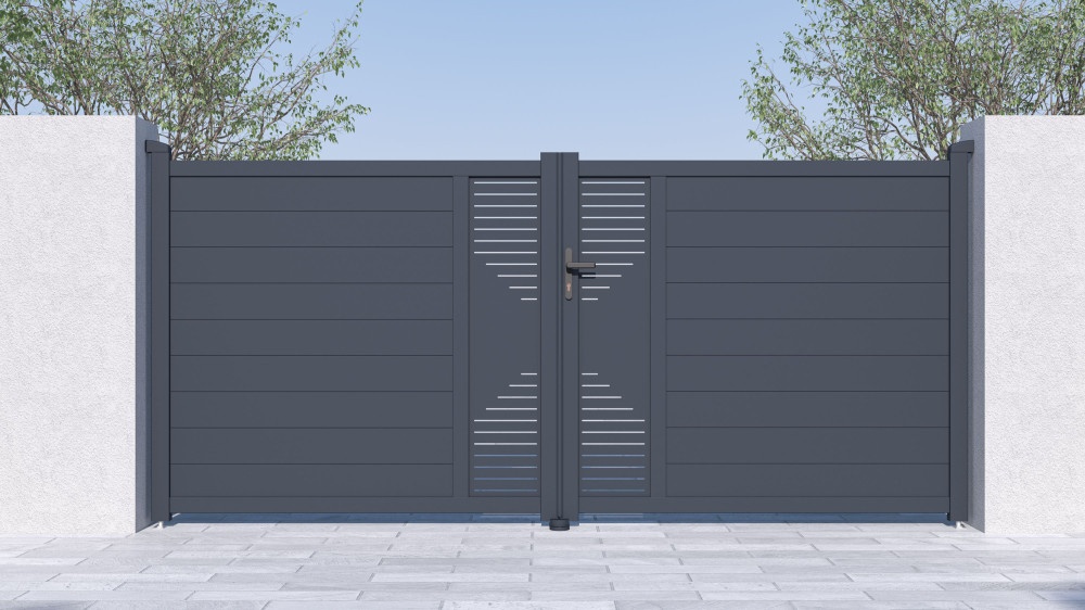 - ozdobný CNC panel dodáva vjazdovým bránam atraktivitu