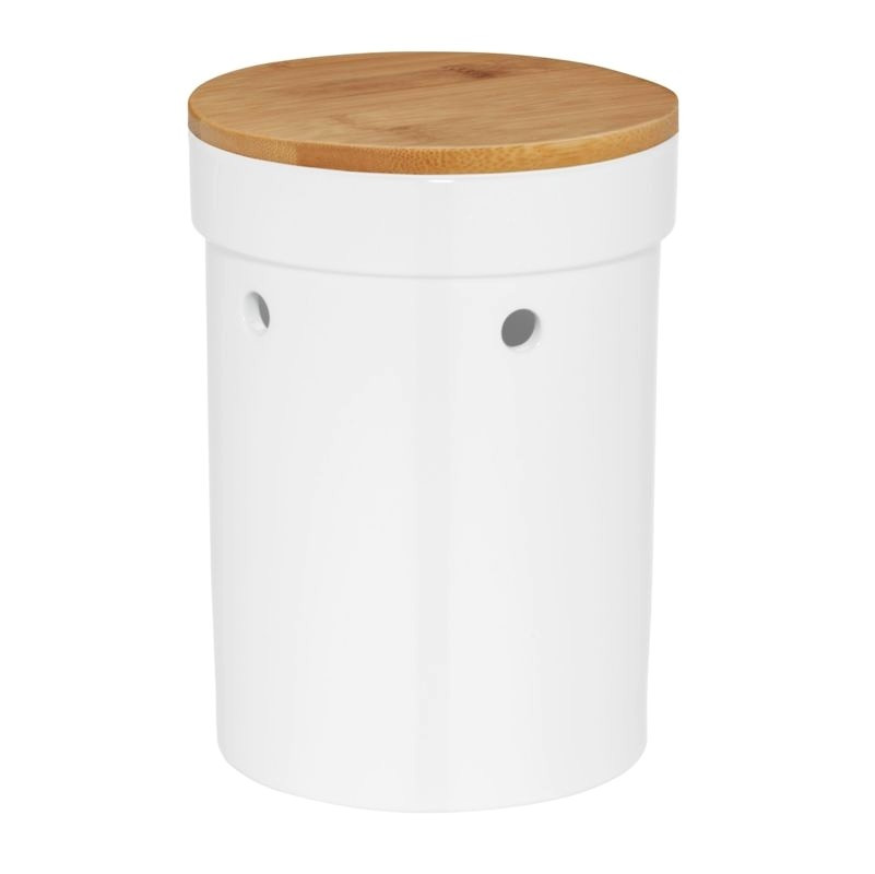 Keramická dóza značky Kela je vhodná predovšetkým na skladovanie cibule. Rovnako tak do nej môžete uložiť akúkoľvek ďalšiu zeleninu alebo potraviny. Dóza má bambusové veko a vďaka perforovanému dizajnu sa vo vnútri nezadržiava vlhkosť a potraviny vydržia dlhšie čerstvé.