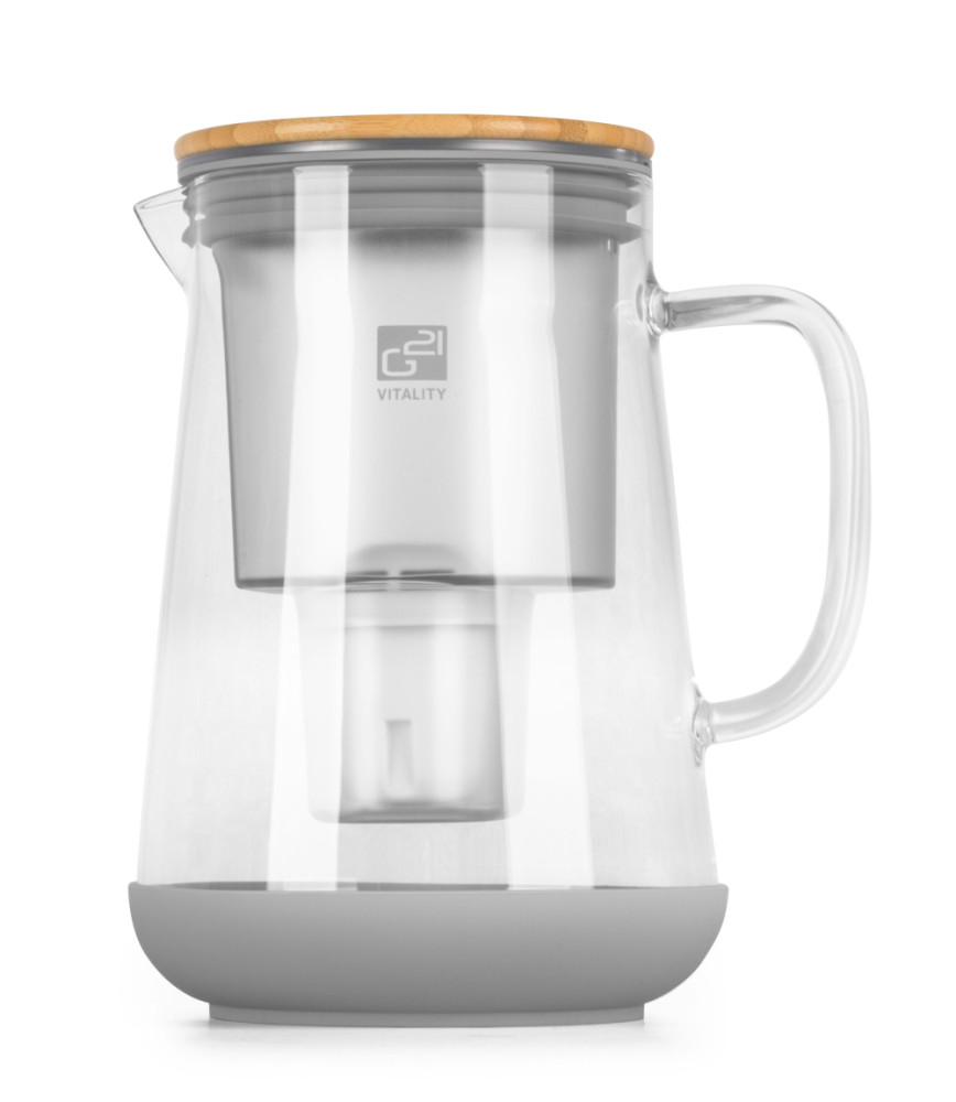 Pite doma krištáľovo čistú vodu ako zo studničky. Vodu s výbornou chuťou a dokonalou čistotou. Bez chémie, bez škodlivých látok, bez starostí aj bez vytvárania zbytočného odpadu z plastových fliaš. Lahodnú vodu získate vďaka kanvici G21, vybavenej pokročilou filtračnou technológiou so 4-stupňovou maximálne účinnou filtráciou. V balení sú tieto filtre hneď 2, každý má životnosť približne 35 dní a dokáže prefiltrovať až 160 litrov vody.
