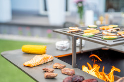 - Viac tepelných zón – grilovať môžete na vyvýšenom rošte alebo nad ohniskom na celej planche v rôznych intenzitách žiaru