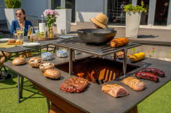 - Viac tepelných zón – grilovať môžete na vyvýšenom rošte alebo nad ohniskom na celej planche v rôznych intenzitách žiaru