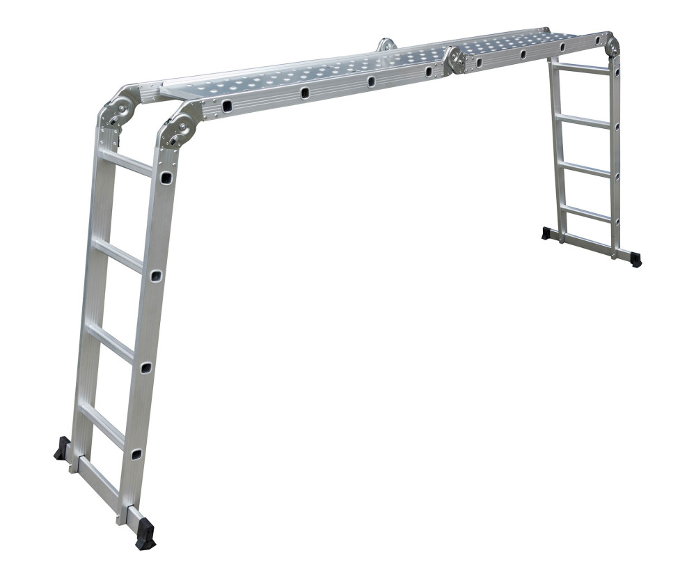 Hliníkové štafle môžete využiť jednak ako dlhý rebrík v dĺžke až 4,6 m. Ďalším variantom je možnosť zostaviť štafle ako prenosné lešenie. Balenie obsahuje 2 ks podlážok pre prestavbu rebríka na lešenie. Vďaka konštrukcii s kĺbmi možno štafle ľahko umiestniť cez hrebeň strechy.