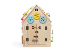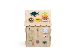 - Drevený activity board domček