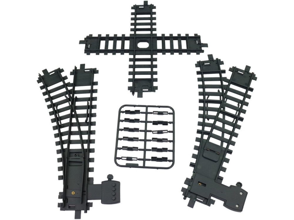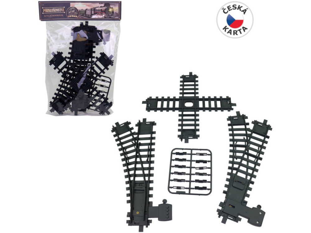 - Sada obsahuje 1× križovatku, 2× výhybku a spojky