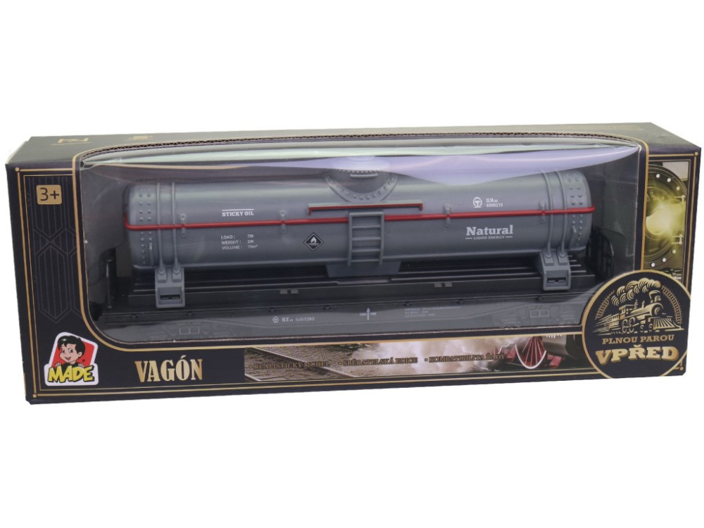 Cisternový vagón MaDe dodá vašej železničnej súprave ten správny industriálny nádych. Sivý dizajn a klasický tvar podnecujú detskú predstavivosť – možno preváža palivo, vodu alebo tajný elixír. Hračka je vyrobená z kvalitného plastu a vďaka kompaktným rozmerom je ideálna do malej detskej ruky aj na domáce koľaje.Špecifikácia