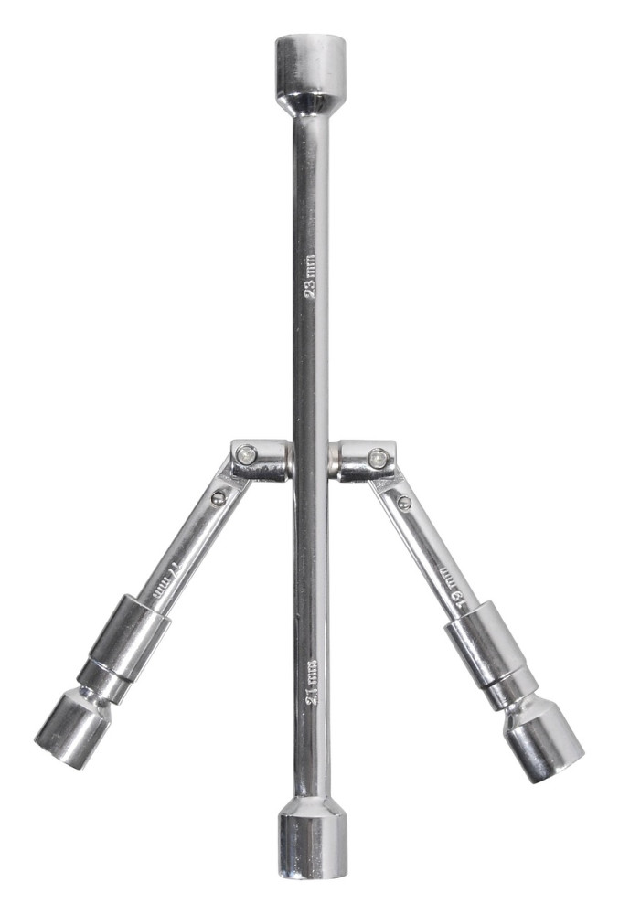 Skladací celokovový kľúč v tvare kríža značky Compass je určený pre povoľovanie / uťahovanie matíc a skrutiekkolies automobilov. Na koncoch sa nacházajú nástavce s rozmermi 17, 19, 21 a 23 mm.