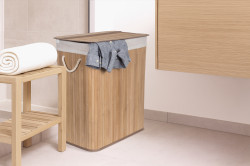 Bambusový kôš G21 s pevným vekom má prateľnú látkovú vložku, rozdelenú na dva samostatné oddiely. Špinavú bielizeň tak môžete triediť už pred praním a umiestniť zvlášť kúsky podľa materiálu alebo farby.