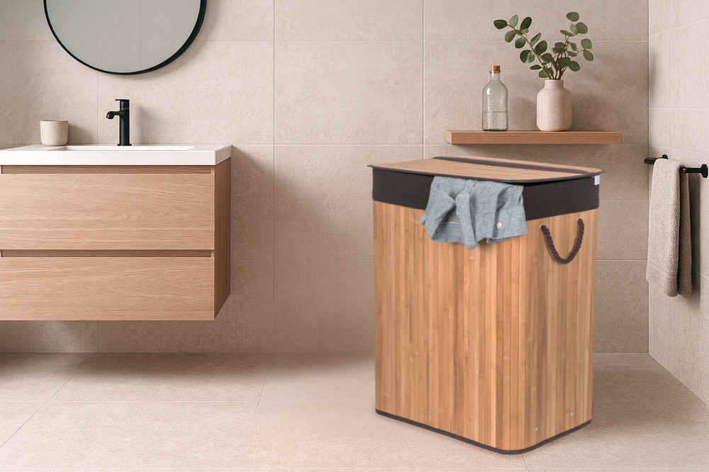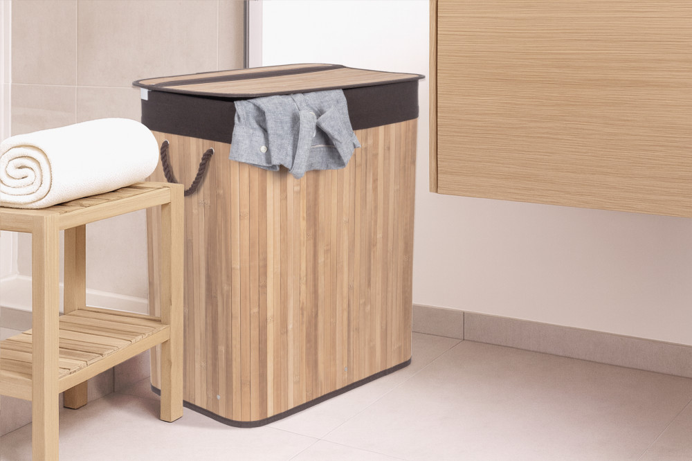 Ako vybrať najlepší kôš na špinavú bielizeň? Čo sa týka materiálu koša, odporúčame jednoznačne bambus. Je odolný voči vlhkosti, takže ho môžete bez obáv umiestniť do kúpeľne alebo servisnej miestnosti s práčkou. Zároveň je aj vizuálne veľmi príjemný – kombinácia prírodného materiálu a farebne zladenej vložke a držadlám evokuje pocit čistoty, navyše sa aj hodí k akémukoľvek interiéru.