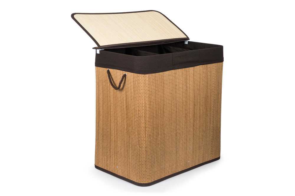Kôš na bielizeň G21 150 l s rozdeľovačmi, bambusový s hnedým košom