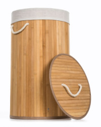 - Kôš na bielizeň G21 55 l, bambusový guľatý s bielym košom