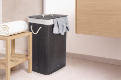 - Kôš na bielizeň G21 72 l, bambusový čierny s bielym košom