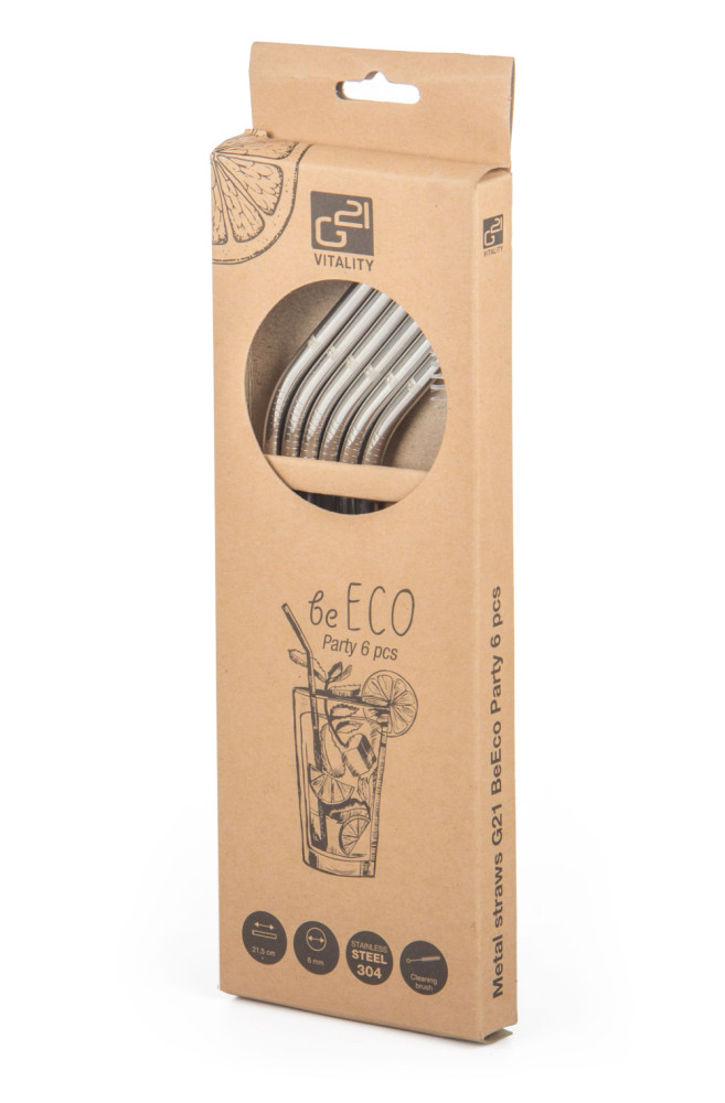 Kúpte si elegantné, odolné, štýlové a predovšetkým ekologické slamky na pitie z nerezu. V sade nájdete 6 zahnutých nerezových slamiek G21 BeEco Party s priemerom 6 mm a dĺžkou 21,5 cm a kefku na čistenie. V ponuke máme aj slamky rovné, prezrieť si ich môžete tu.