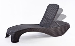 - Grafitovo šedé záhradné lehátko s designom prírodného ratanu