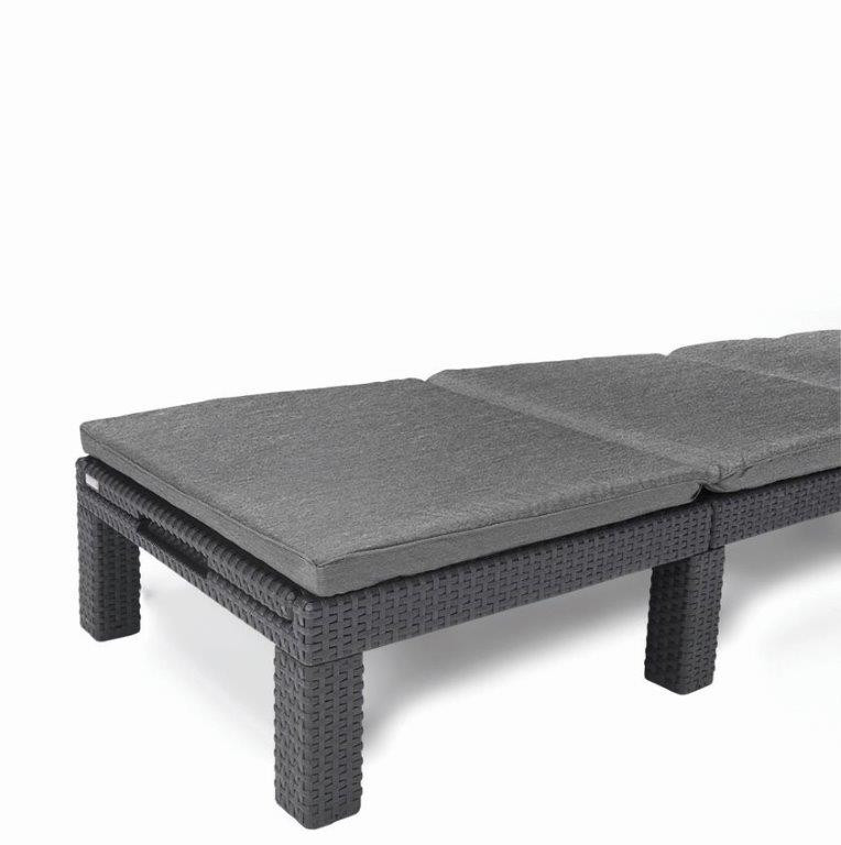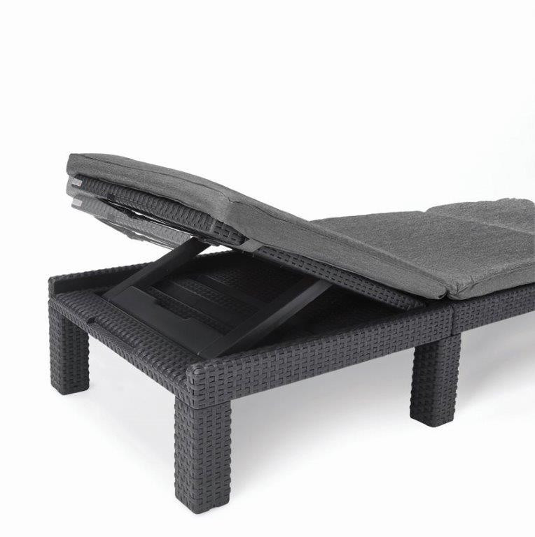 Grafitové plážové a záhradné lehátko Daytona Deluxe značky Keter vás nadchne svojim jednoduchým a moderným dizajnom. K lehátku je pribalená aj pohodlná skladacia poduška.