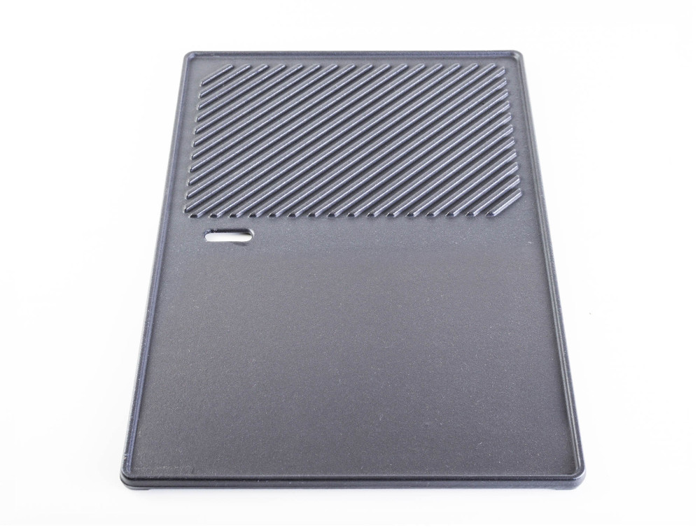 Liatina patrí medzi najodolnejšie materiály, ktoré sa pre grilovanie používajú. Je vysoko odolná proti vysokým teplotám a poškriabaniu. Na každej polovici liatinového plátu máte k dispozícii iný druh povrchu. Jedna polovica je hladká a využijete ju predovšetkým pre grilovanie nakrájanej zeleniny, vajíčok a syrov. Druhá polovica s vrúbkami je určená pre správne grilovanie steakov, väčších kusov zeleniny a rýb.