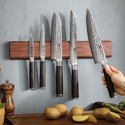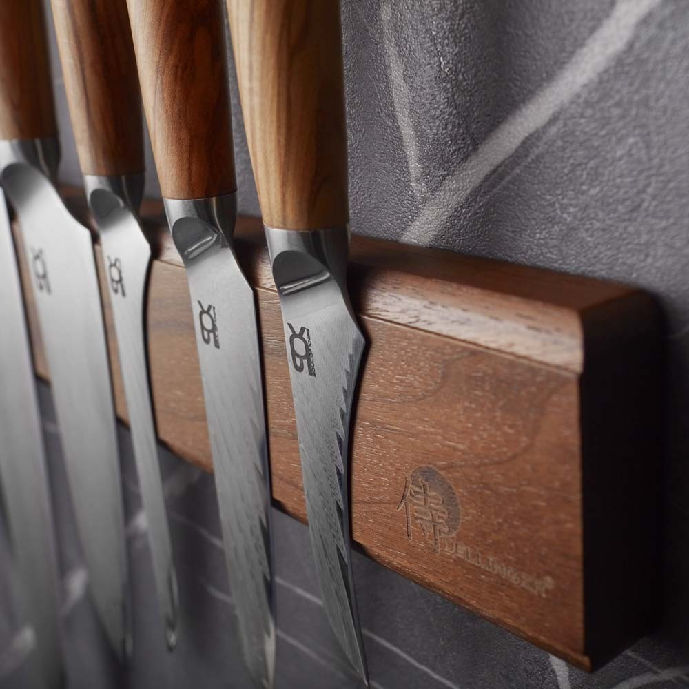 Po celej dĺžke lišty sa nachádzajú silné magnety, ktoré udržia nože bezpečne na mieste. Navyše zamedzíte vzájomnému dotýkaniu čepelí, a tým aj ich otupeniu. Pripevníte na ňu až 6 nožov naraz. Vyhotovenie z kvalitného dreva, ošetreného zmesou olejov a vosku, zaručuje jej dlhú životnosť a odolnosť.