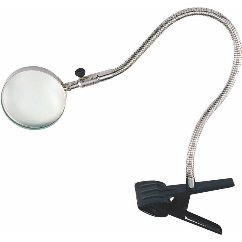 Jedna pevná šošovka pre vás priblíži obraz až 3 x. Pevná lupa má priemer 90 mm. Ohybný krk prístroja sa ľahko pripevní k doske stola pomocou klipsu. Prispôsobiteľnú konštrukciu použijete na čítanie, vyšívanie, modelovanie, opravy a k jemnej detailnej práci.