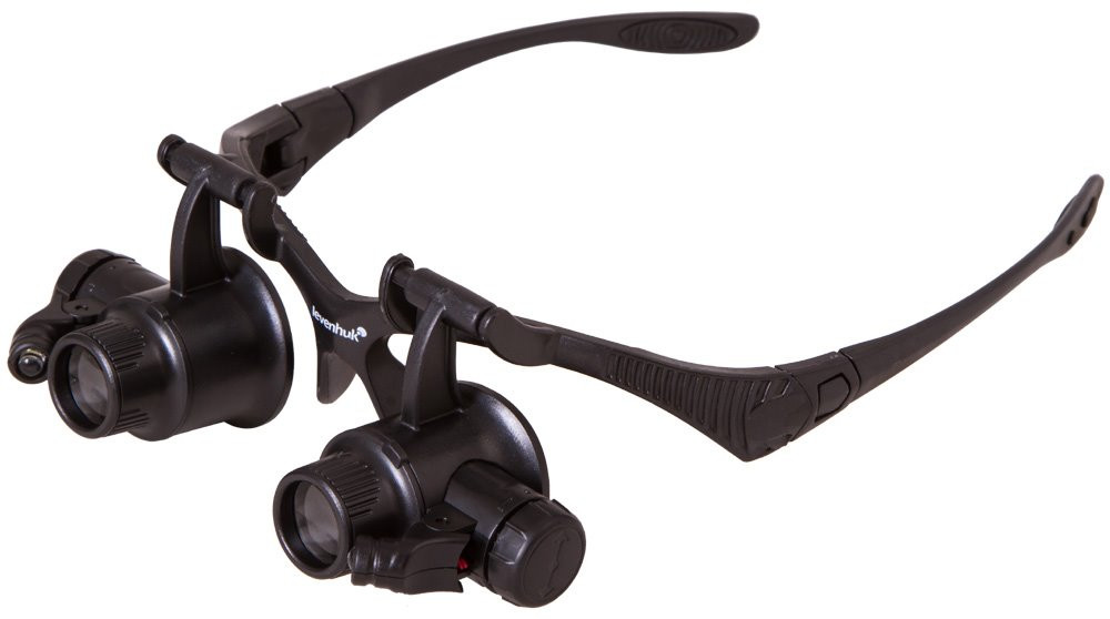 Vyhnite sa prenikanie svetla zo strany so šošovkami v blízkosti očí. V prípade potreby je možné otočením vysunúť nahor. Obe šošovky majú navyše vstavané svetelné LED diódy pre prácu v šere a v tme. Svetelný lúč môžete nasmerovať presne na skúmaný predmet.
