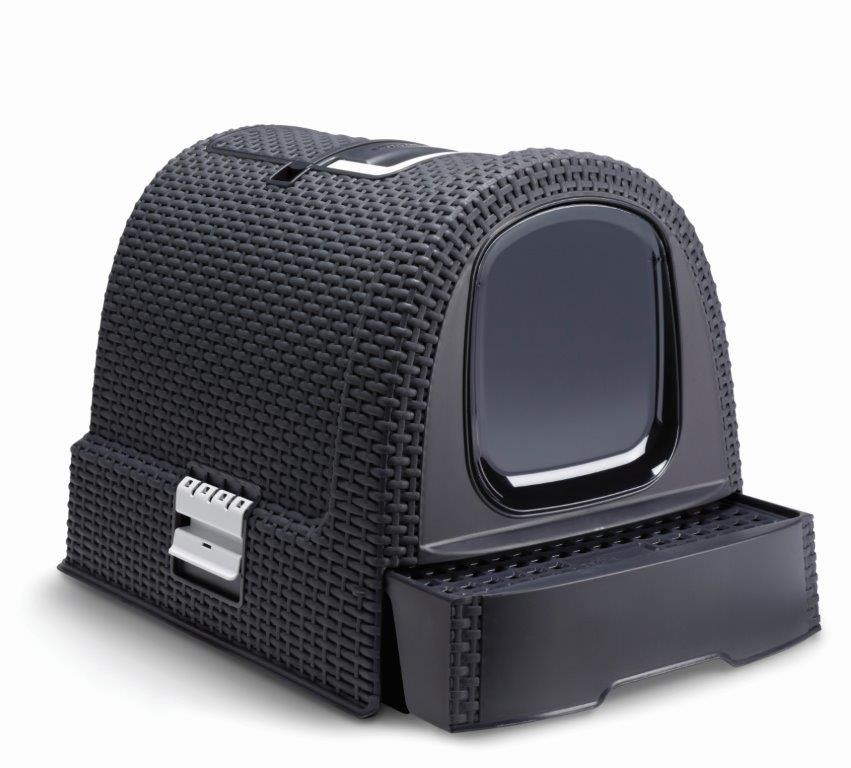 Záchod pre mačky dokonale zapadne do vášho interiéru vďaka elegantnému dizajnu z polypropylénovej živice, ktorý imituje štruktúru prírodného ratanu, takže v danom prostredí nebude pôsobiť nijako rušivo. Navyše sa veľmi ľahko prenáša vďaka integrovanej rukoväti a je odolný voči vyťaženiu, hnilobe, vlhkosti a vode aj proti UV žiareniu, takže môžete záchod v kľude umiestniť na záhradu, terasu či balkón. Tento výrobok je navyše ekologický, pretože toaleta vznikla v spolupráci s asociáciou Waste Free Ocean, takže použitý materiál pochádza z plastov získaných pri čistení oceánov.