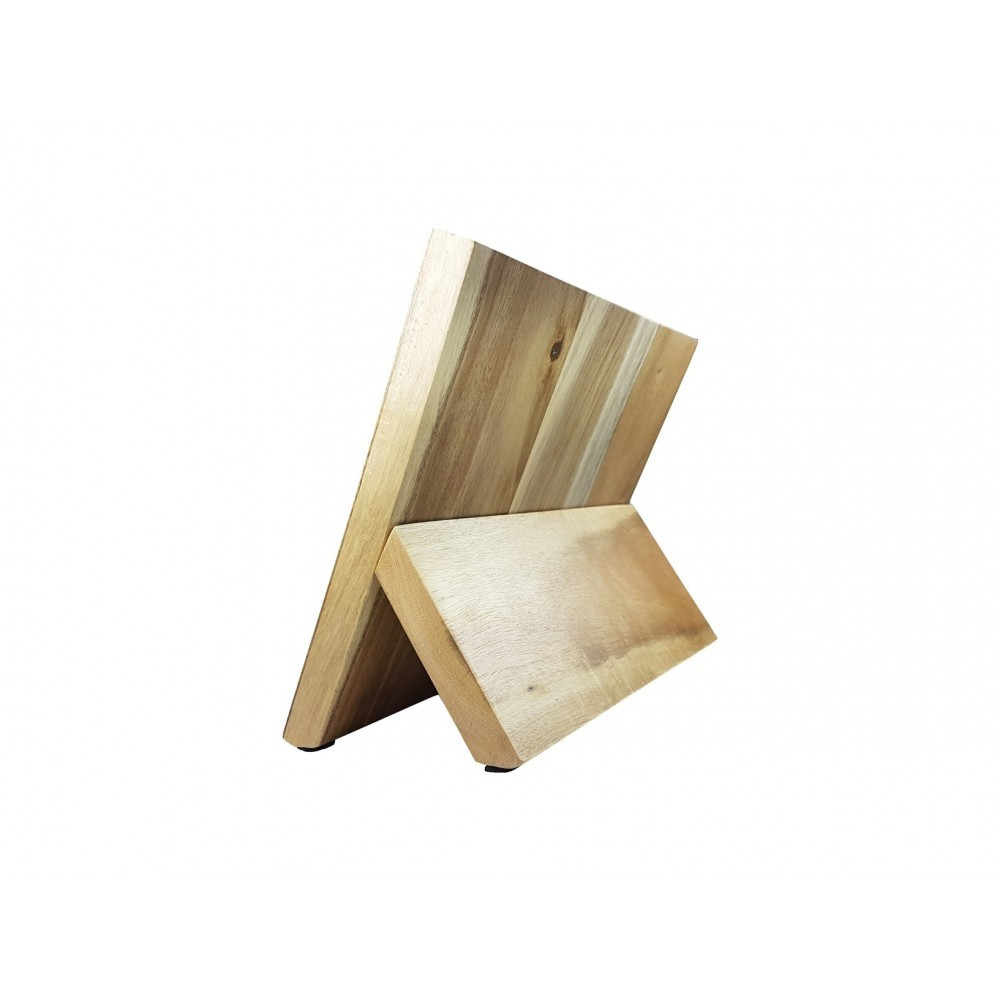Na výrobu tohto držiaka sa používa drevo akácie. Pri použití akáciového dreva sa šetrí životné prostredie, pretože nedochádza k výrubu urastených ušľachtilých stromov. Stojan je nielen krásny svojim dizajnom, ale je aj praktický. Môžete naň priložiť nože z oboch strán.