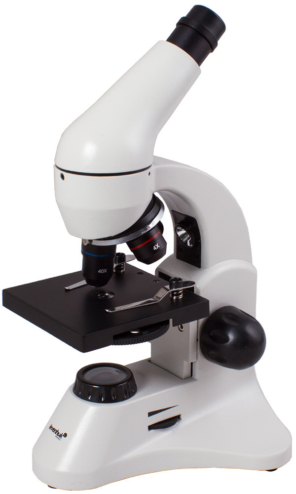 Mikroskop je vybavený tromi objektívmi, ktoré ponúka zväčšenie 40x, 100x a 400x. Všetky optické prvky sú vyrobené z veľmi kvalitného, vysoko transparentného skla.