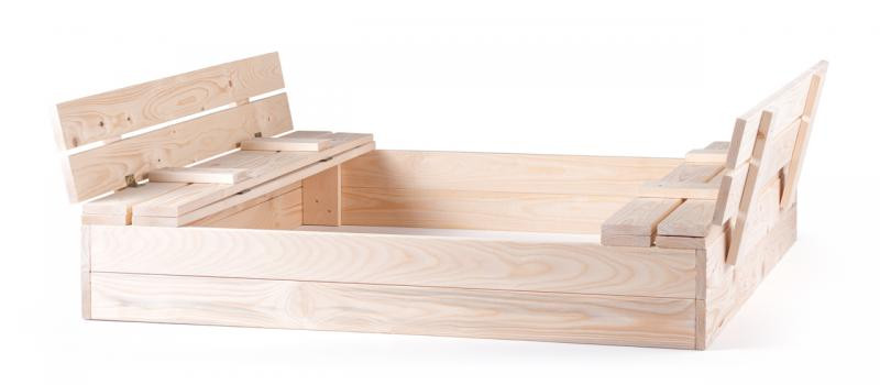 Pekne spracované pieskovisko značky Woody z masívneho dreva zaistí vašim deťom skvelú zábavu takmer po celý rok. Pieskovisko je vybavené praktickým sklopným vekom, ktoré chráni piesok pred zvieratami, opadaným lístím a inými nečistotami v čase, keď si v ňom deti nehrajú. Pokiaľ sa deti na pieskovisku zrovna hrajú, je veko otvorené a premení sa na lavičky, ktoré umožnia pohodlné sedenie pri hre.