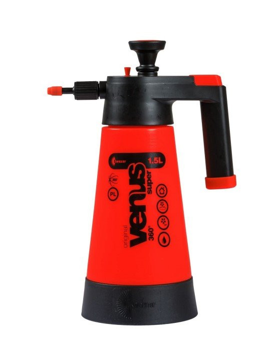 Ručný dvojčinný tlakový postrekovač Kwazar VENUS Super s objemom 2 l sa hodí na prácu v domácnostiach aj na záhrade. Pokiaľ máte balkón, terasu alebo záhon ozdobený množstvom kvetov a malých kríkov, vďaka postrekovaču sa o ne ľahko postaráte. Vďaka mierke hladiny budete vždy vedieť, koľko kvapaliny sa v nádobke nachádza. Keďže je postrekovač otočný o 360°, jeho používanie bude vždy ľahké a postrek vykonáte v akomkoľvek sklone. O-krúžky sa postarajú o tesnenie a odolajú rôznym teplotám a oteru a poistný ventil obstará jednoduchšie zaobchádzanie.
