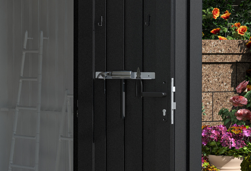 Inštalácia vešiakov je extrémne jednoduchá a nie je k nej potrebné vŕtanie ani skrutkovanie. Vešiaky G21 sú konštruované pre priame nasadenie do kotevných otvorov, ktoré sú z výroby pripravené vo dverách domčeka Atlanta a Madison. To umožňuje ich okamžité použitie aj jednoduché premiestnenie bez poškodenia povrchu dverí. Vešiaky sú vyrobené z kvalitnej pozinkovanej ocele, ktorá zaručuje dlhú životnosť a vysokú odolnosť proti korózii. Nosnosť každého vešiaka je 3,5 kg, preto naň môžete bezpečne zavesiť bežné záhradné a dielenské náradie, ako sú motyčky, lopatky alebo kladivká a kliešte.