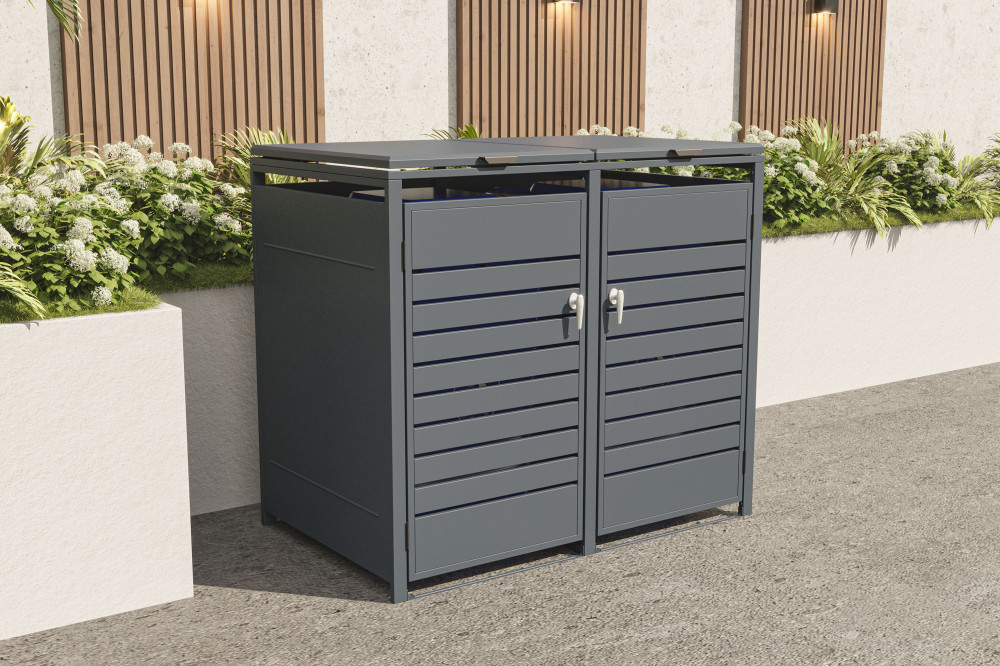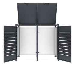 Moderný dizajn v antracitovej farbe skvele doplní modernú novostavbu aj tradičný vidiecky dom. Vďaka kompaktným rozmerom sa zmestí aj do menších priestorov pri vstupe alebo pozdĺž plotu. Pomocou prístrešku elegantne skryjete nevzhľadné plastové nádoby na odpad a prispejete tak k celkovému upravenému vzhľadu celého okolia domu.