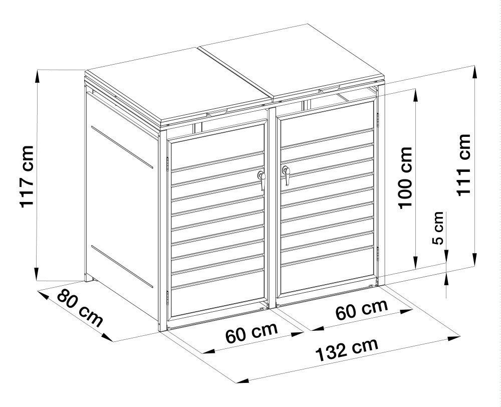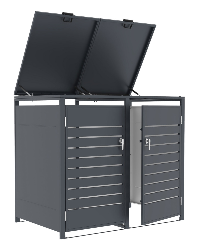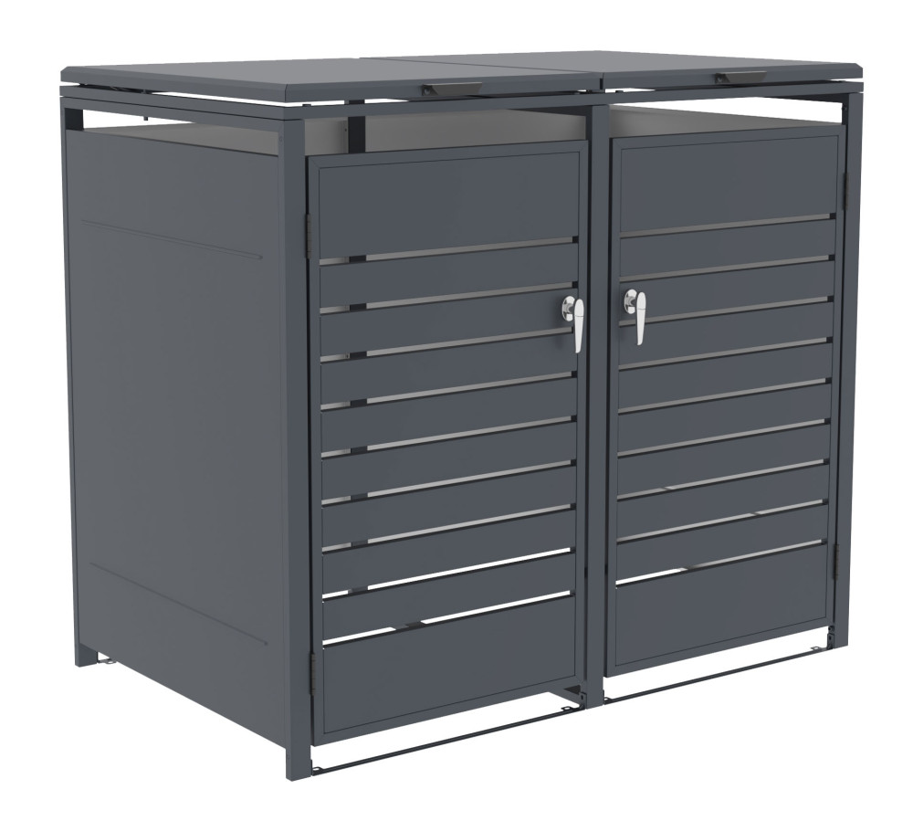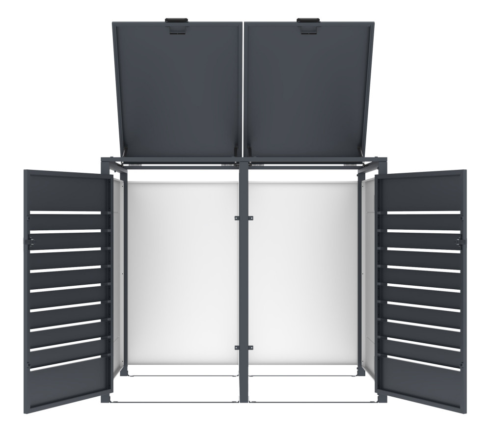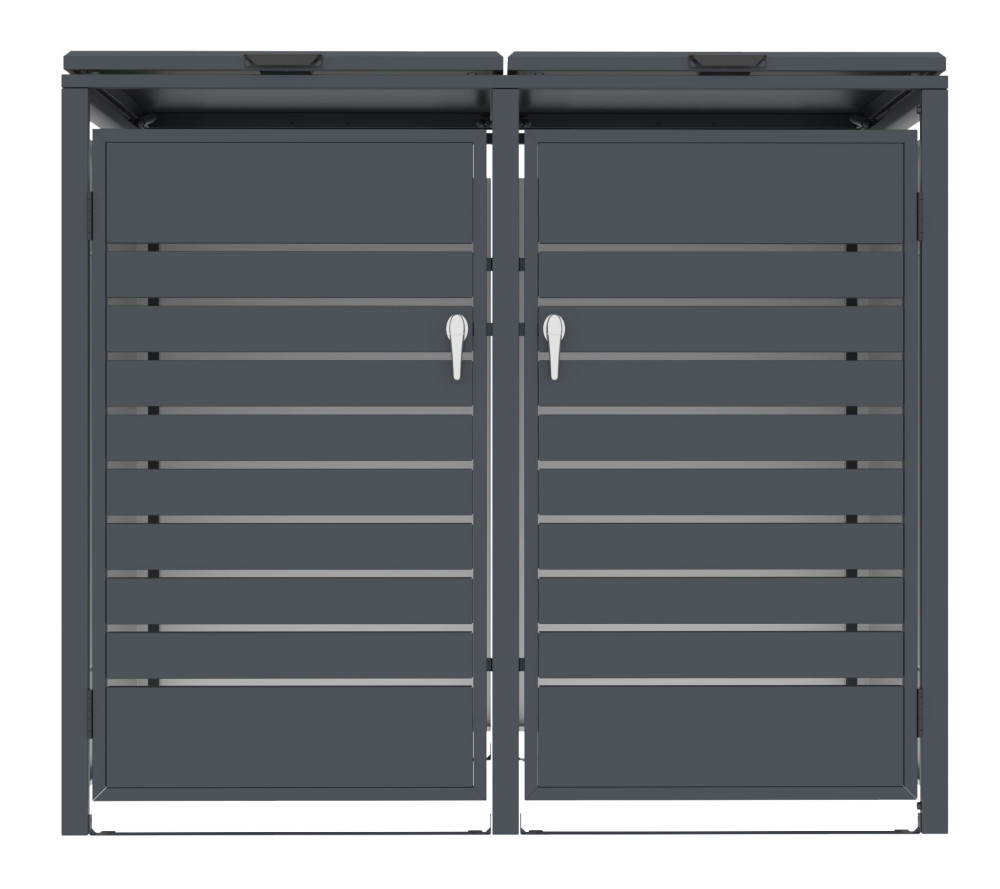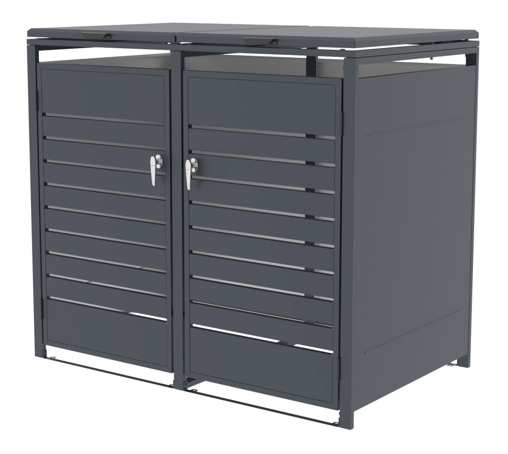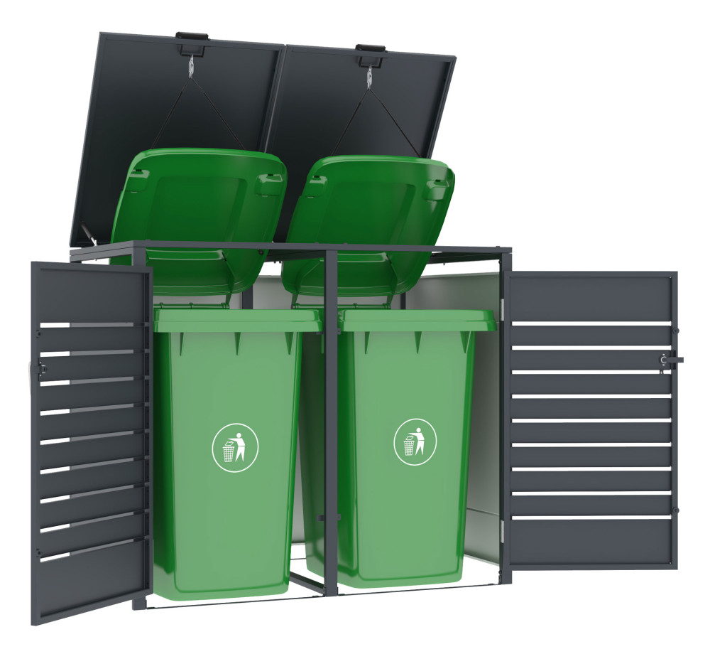 Hľadáte estetické a bezpečné riešenie pre uloženie smetných nádob v blízkosti vášho domu? Prémiový plechový prístrešok na smetné koše G21 s elegantným dekorom v antracitovej farbe predstavuje špičkové riešenie pre umiestnenie nádob na odpad. Vďaka nadštandardne silnej 0,8 mm pozinkovanej oceli prístrešok hravo odolá korózii aj náročným poveternostným podmienkam, preto je vhodný pre celoročné umiestnenie kdekoľvek v exteriéri.