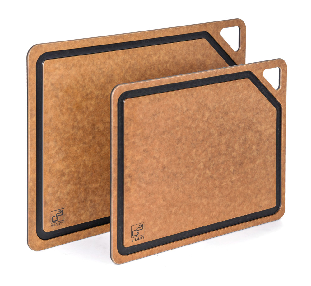 Celulóza pochádza z obnoviteľných surovín, a preto je 100 % biologicky rozložiteľná. Pri výrobe sa nepoužívajú žiadne škodlivé látky ako BPA alebo VOC, takže dosky sú zdravotne nezávadné a úplne bezpečné na kontakt s potravinami. Ak chcete znížiť svoj vplyv na životné prostredie a zároveň si užiť moderné, kvalitné kuchynské pomôcky, dosky G21 EcoCut sú pre vás tou správnou voľbou.