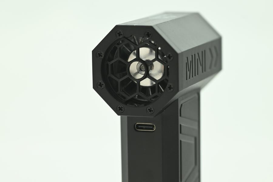 Práca s pumpou je intuitívna a bezpečná. Aktivuje sa dvojitým stlačením spúšte, čím sa predchádza nechcenému zapnutiu v batožine. Vstavaný akumulátor s kapacitou 4000 mAh zaistí až 60 minút prevádzky na najnižšom stupni. O stave nabíjania vás informuje prehľadná LED signalizácia (červená pre nabíjanie, modrá pre plné nabitie). Vďaka univerzálnemu USB-C konektoru môžete pumpu dobiť z powerbanky, v aute alebo z bežného adaptéra k telefónu.