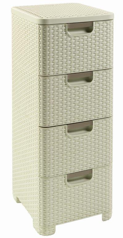 Praktický dizajnovo prepracovaný stojan so šuplíkmi v imitácii ratanu vám pomôže udržať poriadok doma, v dielni alebo napríklad aj na záhrade.