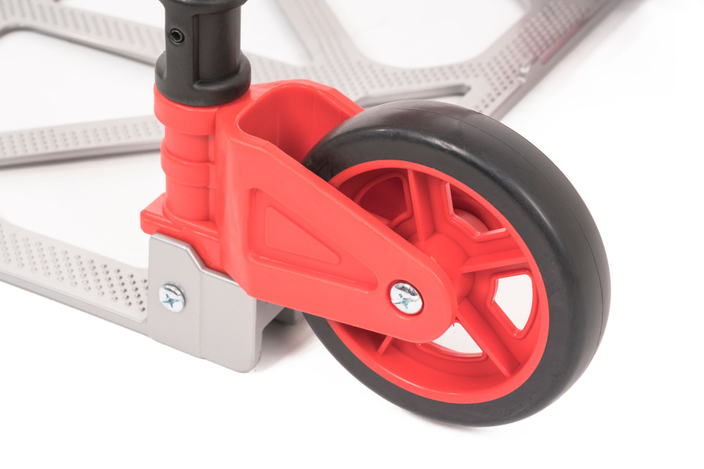 Rudla G21 váži iba 3 kg, napriek tomu zvládne náklad až do 70 kg. Vďaka celohliníkovej konštrukcii je odolná voči korózii a veľmi ľahká na manipuláciu. Kolieska s priemerom 12,5 cm zabezpečujú plynulý pohyb po chodníkoch, podlahách a iných hladkých povrchoch. V zloženom stave zaberie len 38,5 × 63 × 5,5 cm, takže ho bez problémov uložíte aj do menšieho priestoru.