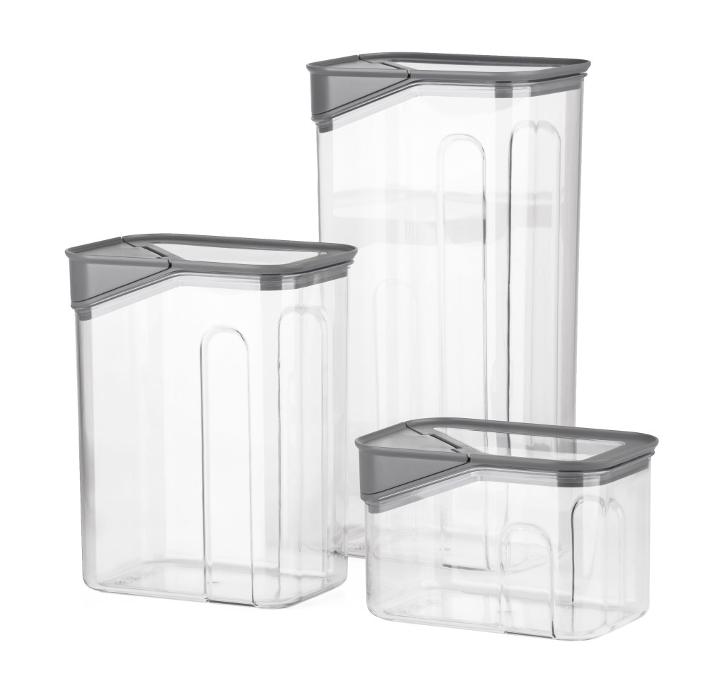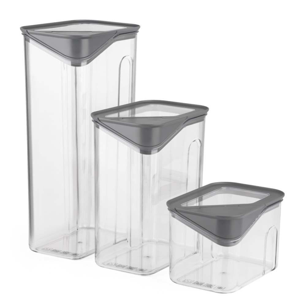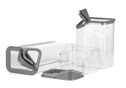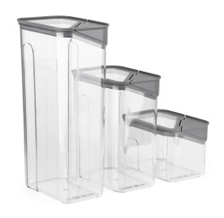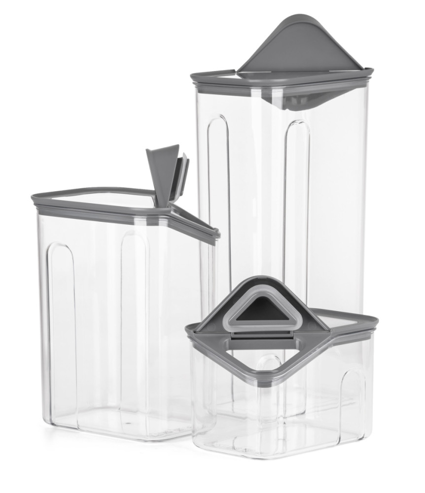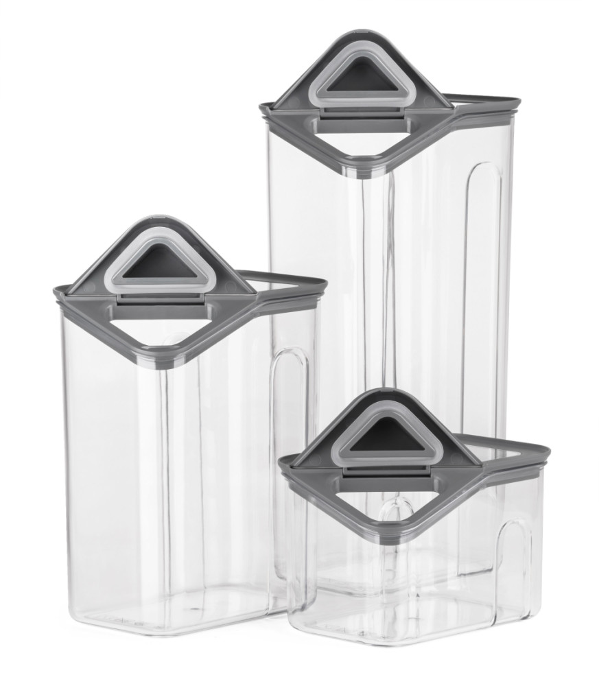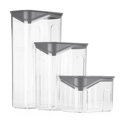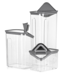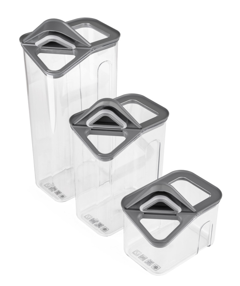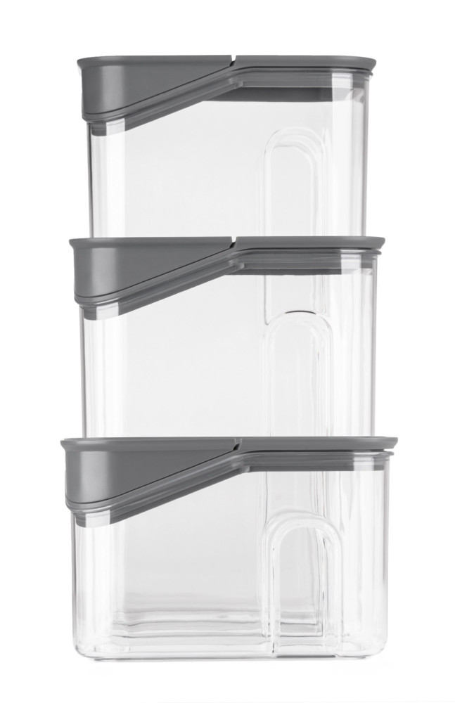 Snívate o dokonale usporiadanej kuchyni a špajze? Potrebujete dať svojim skrinkám poriadok? Udržte si v kuchyni systém pomocou plastových dóz na potraviny značky G21, vaše skrinky aj chladnička sa vám poďakujú. Sada obsahuje 3 stohovateľné boxy rôznych veľkostí s viečkami, ktoré sú vzduchotesné a majú výklopný roh s násypkou, vďaka čomu sa vyhnete neporiadku pri dávkovaní. Navyše ich môžete použiť aj v chladničke či mrazničke – ideálne riešenie pre prehľadné skladovanie potravín.
