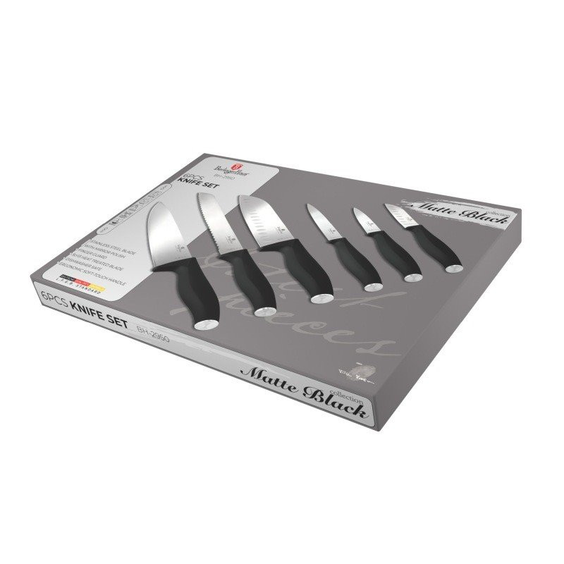 Sada Berlingerhaus Matte Black Collection sa skladá z 6 nožov v magnetickej darčekovej krabičke. Ostré čepele z nerezovej ocele sú ručne brúsené a zaisťujú dlhú výdrž a odolnosť.