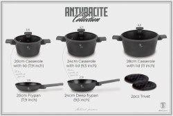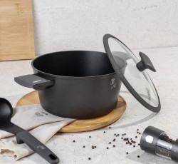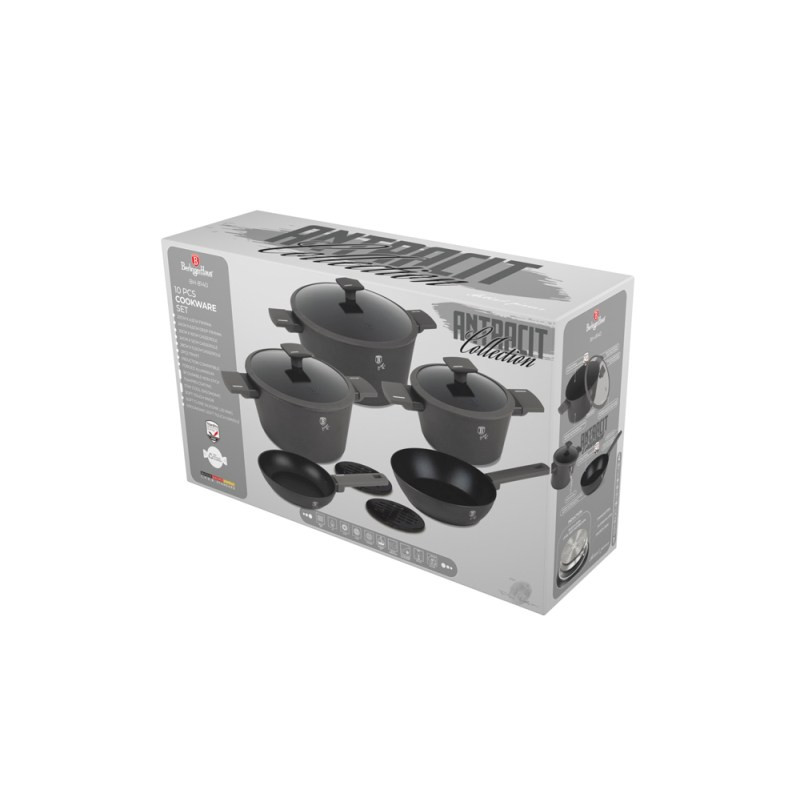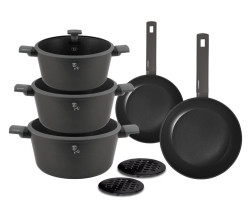 Sada nádobí Berlingerhaus Antracit Collection vyniká moderním designem a vysokou odolností díky třívrstvému povrchu TitanPro, který je až 3× odolnější proti poškození. Díky turboindukčnímu dnu a kvalitnímu zpracování z kovaného hliníku zajistí rovnoměrný ohřev a pohodlné vaření s minimem tuku.