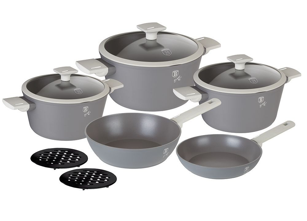Sada riadu Berlingerhaus Aspen Collection sa skladá z 2 panvíc, 3 hrncov s pokrievkami a 2 podložiek pod horúce kastróly. Využijete ich na každodennú prípravu svojich obľúbených pokrmov. Riad sa stane vašim univerzálnym pomocníkom pri varení, dusení aj smažení. Vnútorná vrstva všetkých kastrólov a panvíc je potiahnutá trojvrstvovým titánovým povrchom. Vyniká perfektnou nepriľnavosťou, preto sa vám pripravované jedlá nepripaľujú a riad ľahko očistíte. Môžete ho dokonca umyť aj v umývačke riadu. Pri varení navyše použijete menšie množstvo tuku alebo oleja.