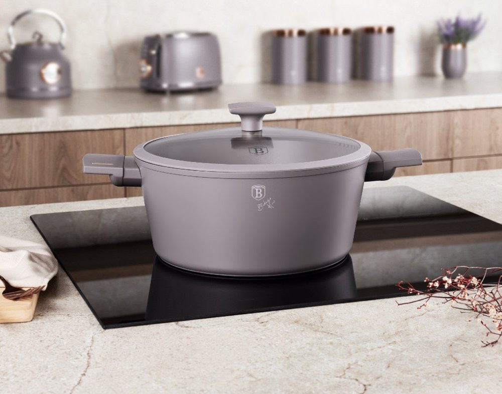 Sada riadu Berlingerhaus Taupe Collection spája moderný minimalistický dizajn a vysoký výkon pre každodenné varenie. Vďaka trojvrstvovému titánovému povrchu TitanPro, ktorý je až 3× odolnejší, pripravíte pokrmy bez pripaľovania a s minimom tuku, zatiaľ čo turboindukčné dno zabezpečí rýchly a rovnomerný ohrev.